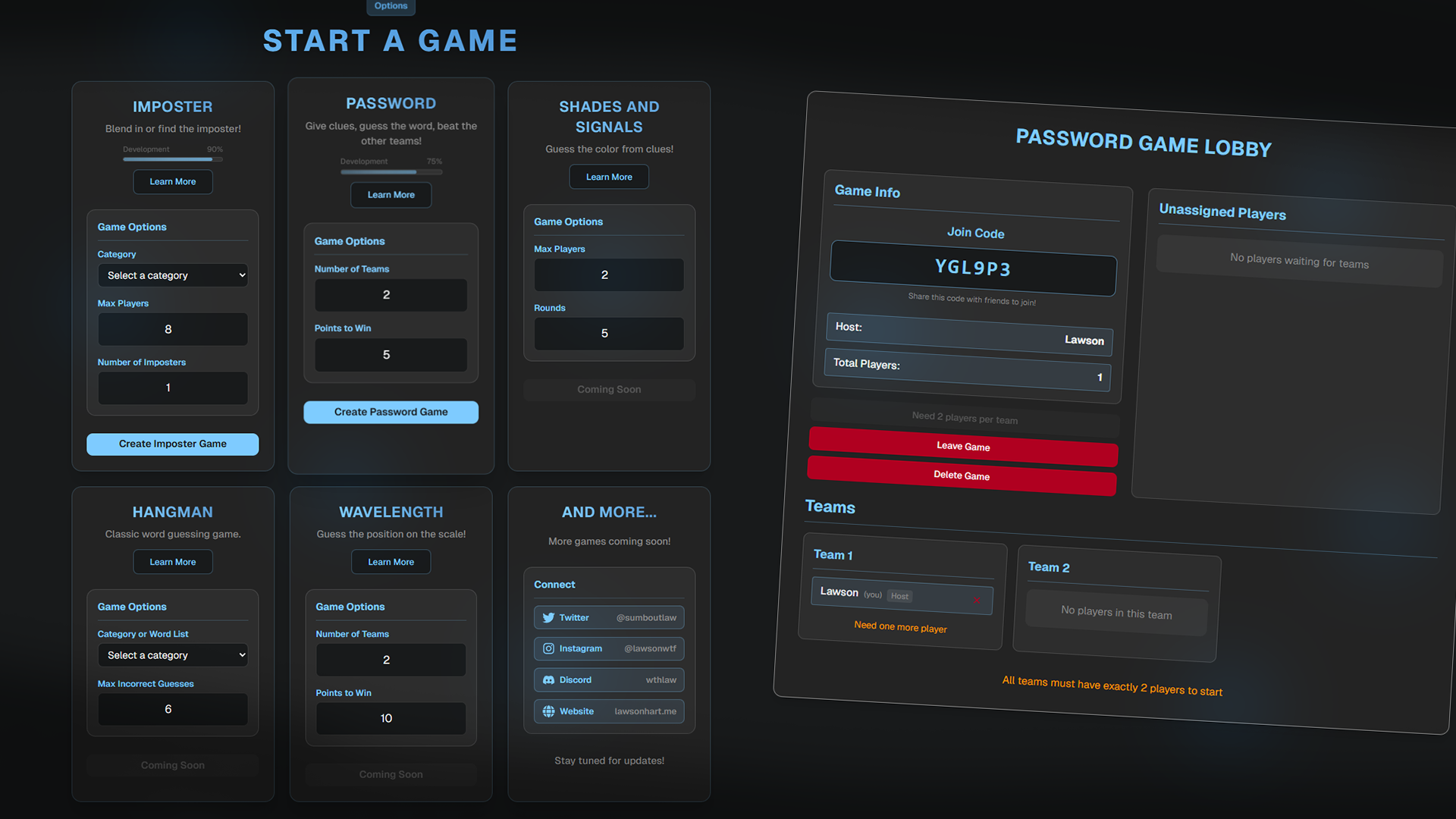 I wanted fast, zero account party games you can start on a call. No signup friction. No lobby spam. Just: enter a name, pick a game, give friends a code. Off the shelf options were heavy or locked behind monetization. So I built my own controlled environment with short lived sessions and explicit game lifecycles.